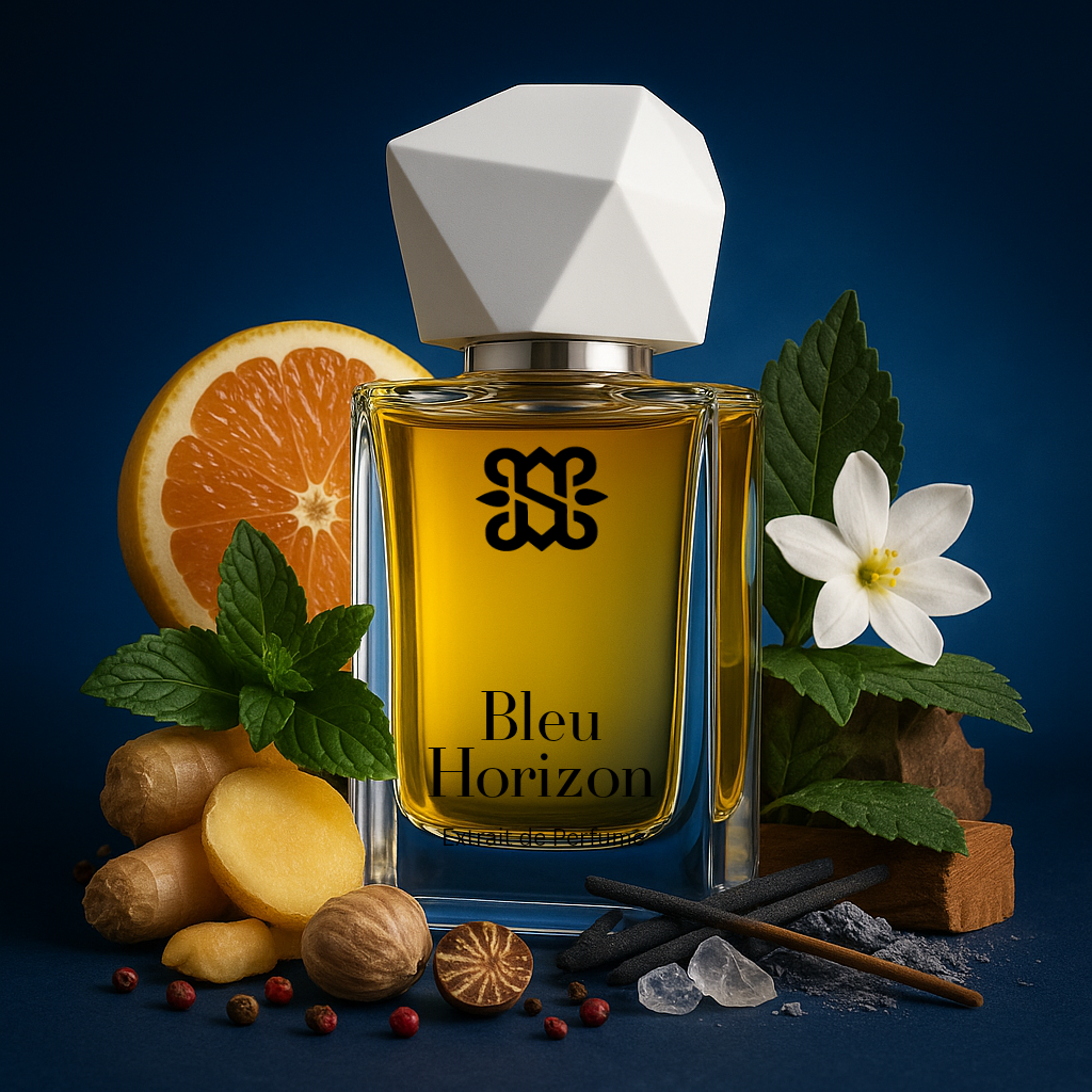 Bleu Horizon is a fragrance that captures the essence of sophistication, freedom, and limitless possibilities. Fresh yet intense, it opens with an invigorating blend of citrus notes — zesty lemon, orange, and grapefruit — that immediately refresh and energize. The heart reveals a smooth, aromatic depth with the perfect balance of cedarwood, labdanum, and a hint of ginger, lending the fragrance both elegance and power. As it settles, the base of sandalwood, amber, and musk offers a warm, masculine foundation that lingers in the air with quiet strength.